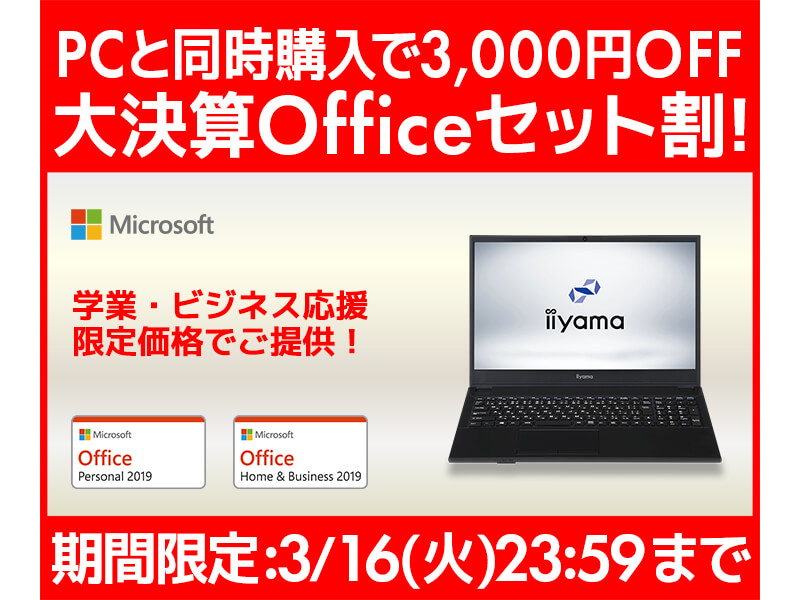 パソコン工房、PCとOfficeを同時購入で3千円引きとなるキャンペーン