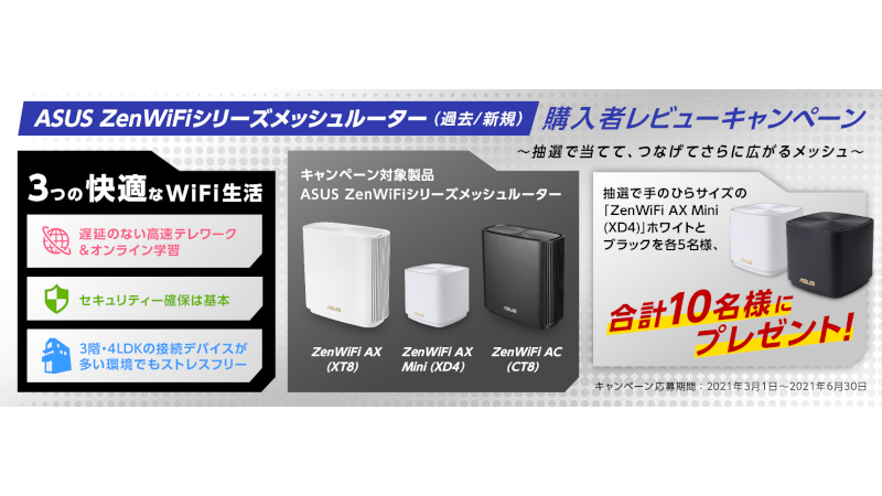 ASUS、ルーターをレビューすると、もう1台ルーターが当たるキャンペ―ン
