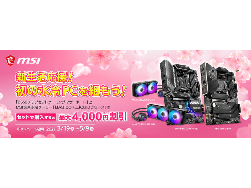 MSI、水冷クーラーとB550マザーを同時購入で割引