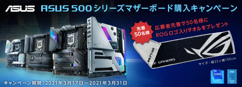 ASUS、Intel 500シリーズマザー購入でタオルプレゼント