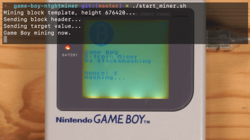 ゲームボーイは毎秒0.8ハッシュでビットコインをマイニングできる