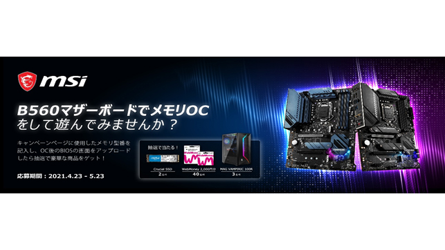 MSI、B560マザーでメモリをOCするとSSDなどが当たるキャンペーン