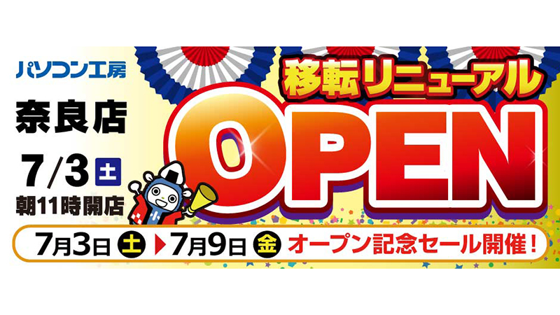 パソコン工房の奈良店が移転。リニューアルオープンセールも実施