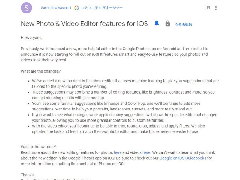 iOS版Googleフォト、AIを活用した編集機能を実装
