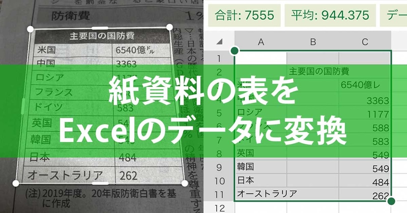 紙資料の表をExcelのデータに変換する方法。Officeのスマホアプリでスキャンできる ほか