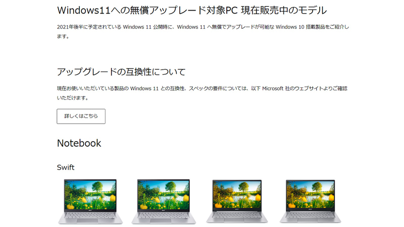 日本エイサー、Windows 11アップグレード対応製品一覧を公開