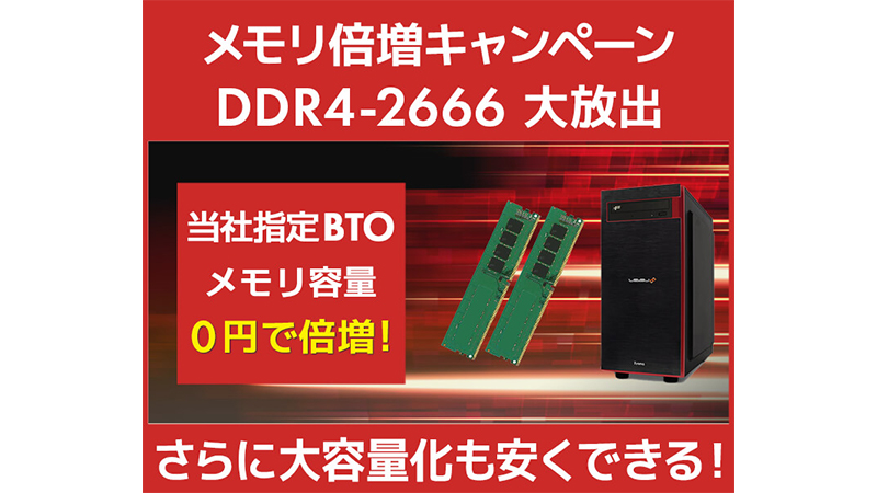 パソコン工房、指定デスクトップPCの標準メモリが容量2倍になるキャンペーン
