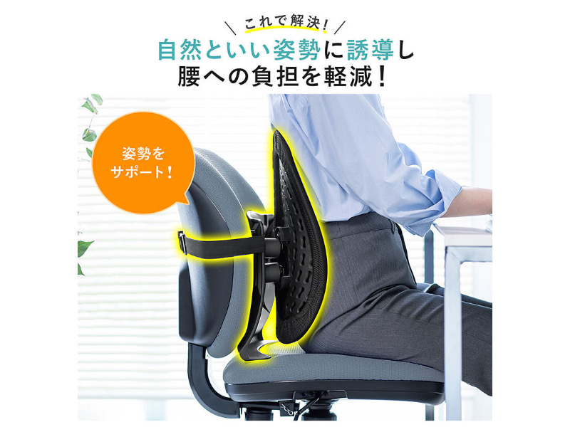 椅子の背もたれに固定できるランバーサポート、サンワサプライから
