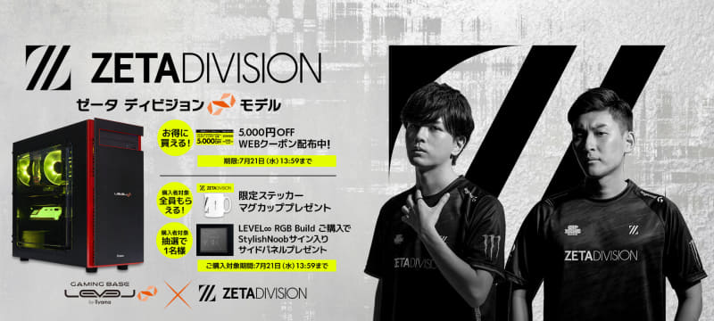 LEVEL∞、Riddle/REIGNITE/ZETA DIVISION/SBI e-SportsコラボPCが5千円オフ