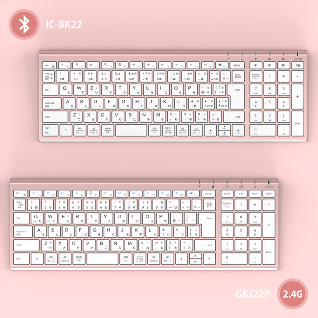 ローズピンク色の無線キーボード