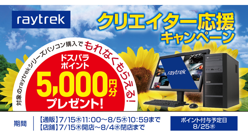 ドスパラ、raytrek PC購入で5千円分のポイントがもらえるキャンペーン