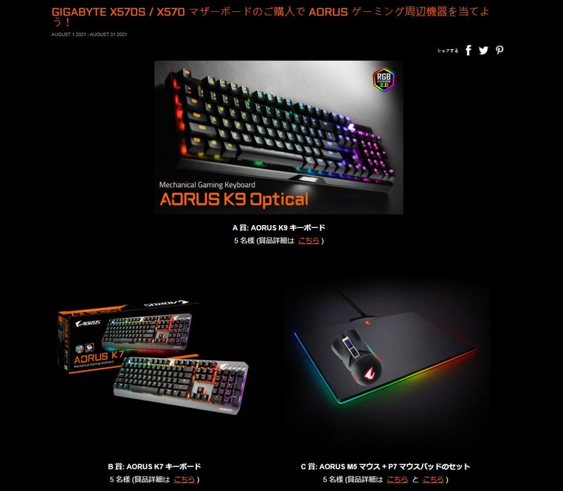 GIGABYTE、X570マザボ購入でキーボードやマウスが当たるキャンペーン