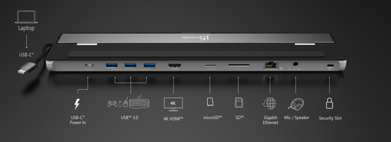 j5create、4K対応のHDMIや音声出力を備えたUSB Type-Cドック