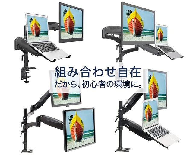 ノートPCと液晶に両対応するディスプレイアーム
