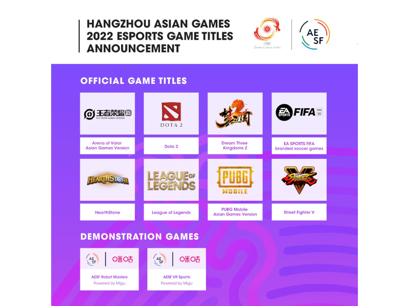 2022年に中国・杭州で開催するアジア競技大会のeスポーツ競技タイトルが決定