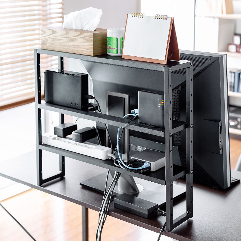 サンワサプライ、ディスプレイ裏に収納スペースを作れる3段机上ラック(4/7)