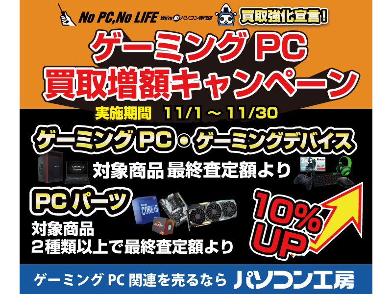 パソコン工房、ゲーミングPCやデバイスの買取増額キャンペーン