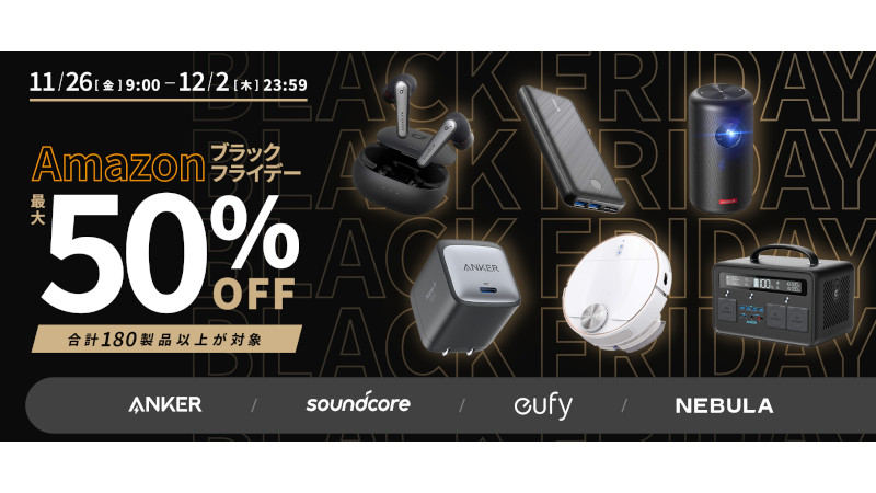 Anker、GaN採用充電器やポータブル電源が大幅割引。Amazonブラックフライデーで
