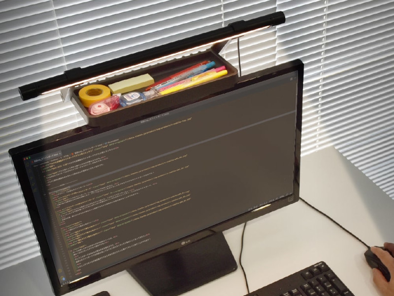 サンコー、液晶ディスプレイ上部に設置する調光LED照明付き小物トレイ