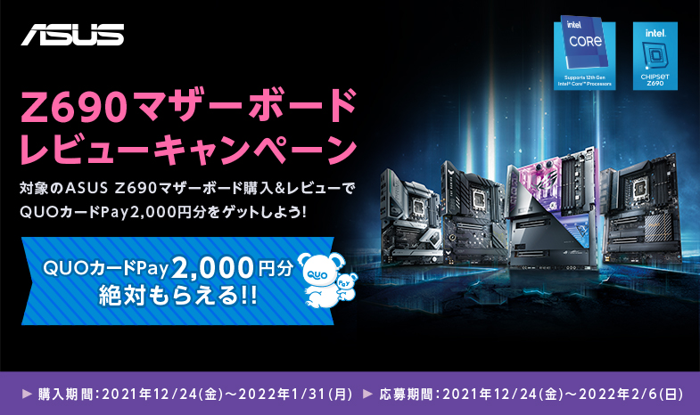 ASUSのZ690マザー購入でQUOカードPay 8,000円分プレゼント