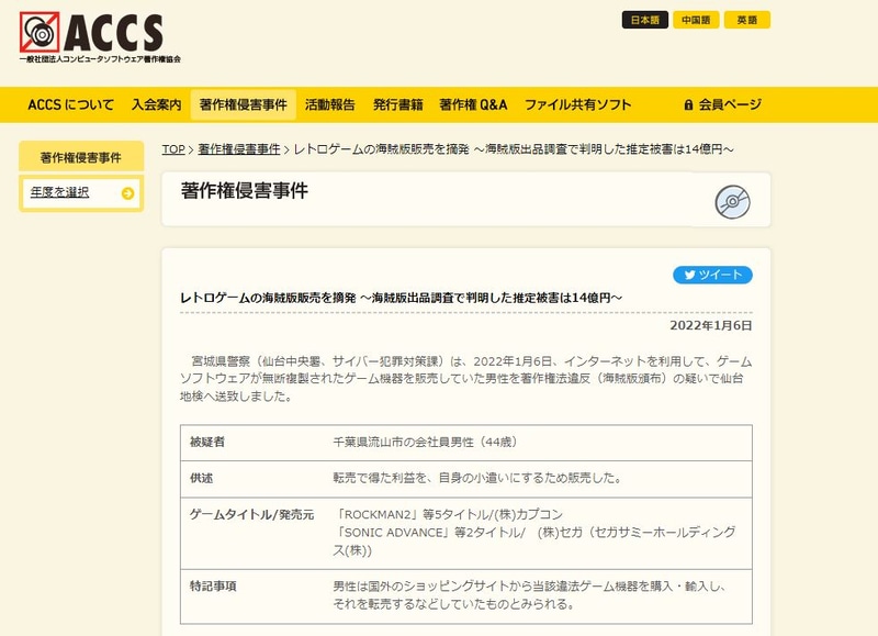 宮城県警、レトロゲーム海賊版入りゲーム機器販売の男性を逮捕