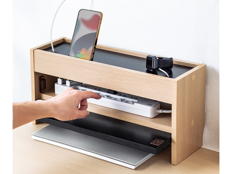 エレコム、天板にスマホスタンドを備えたケーブルボックス