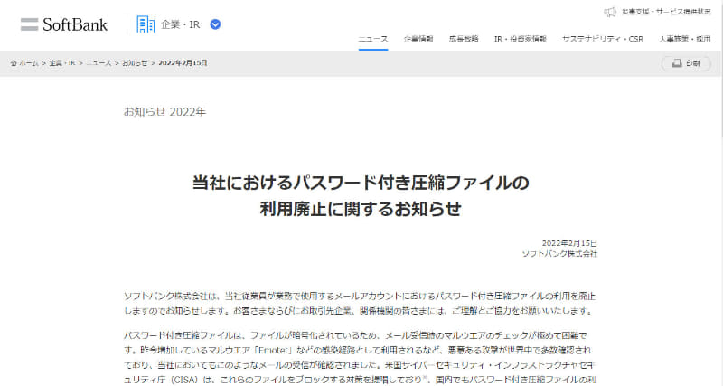 ソフトバンク、メールでのパスワード付き圧縮ファイルを運用廃止。受信すると自動削除
