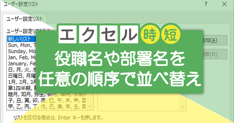 【エクセル時短】役職名や部署名を決まった順序で並べ替え。「ユーザー設定リスト」の使い方 ほか