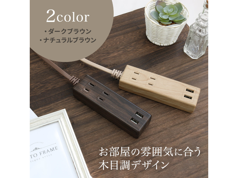 オウルテック、USBポート2基搭載の木目調タップ。急速充電対応