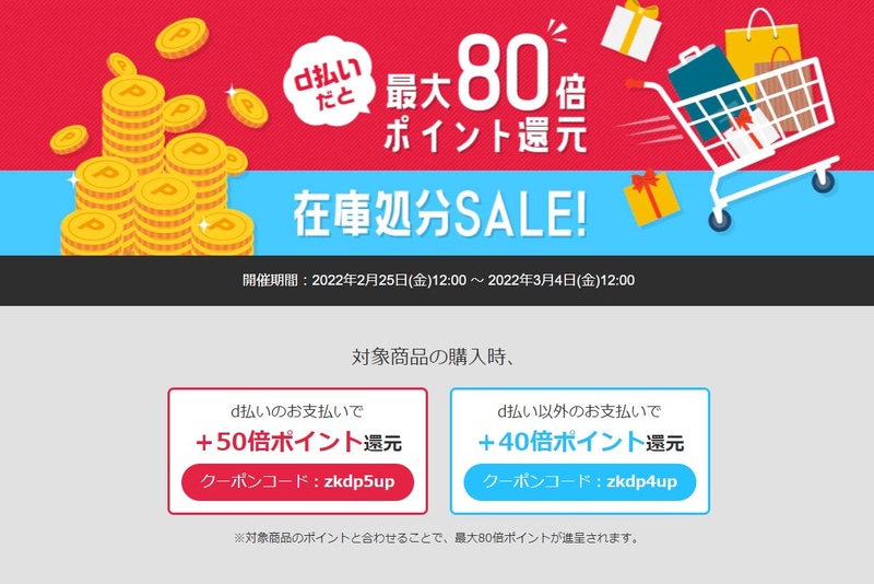 ひかりTVショッピング、d払い利用で最大80倍ポイント還元の在庫処分セール