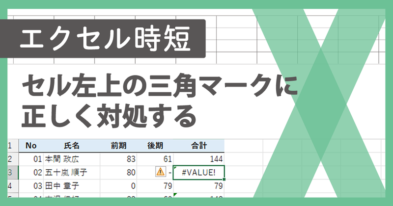 【エクセル時短】セル左上の三角マークを消す方法。「エラーインジケーター」に正しく対処しよう ほか