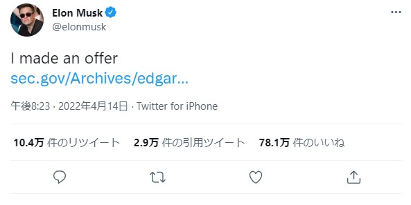 イーロン・マスク氏がTwitterを440億ドルで買収