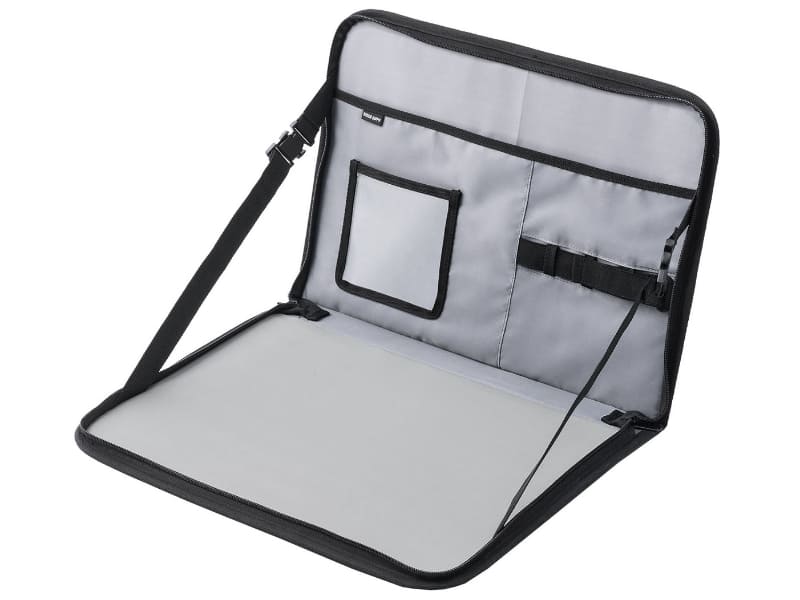 サンワサプライ、車のハンドルに引っ掛ける簡易テーブル。ノートPCは16型まで対応
