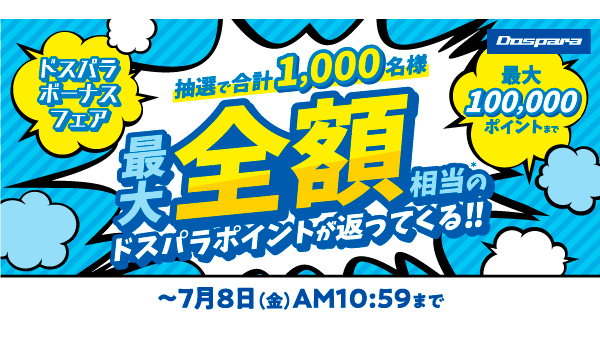 ドスパラ、抽選で購入金額相当分のポイントが当たるボーナスフェア