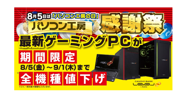 「パソコン工房の日」記念セール/キャンペーン。特価PCやLINEクーポン配布など