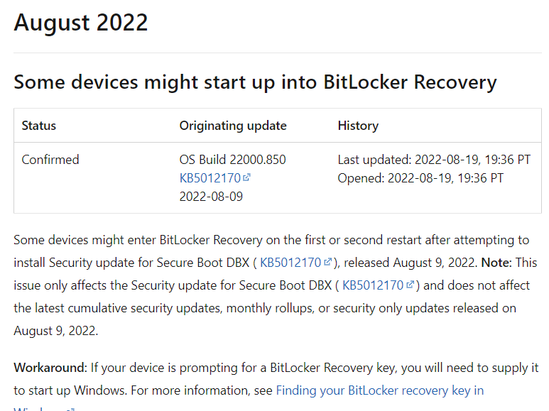 起動時にBitLocker回復画面が表示されるなら、それは最新Windows Updateの不具合かも