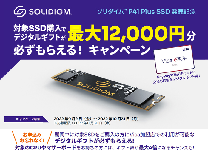 ソリダイム製SSD購入で最大1万2千円分のギフト券がもらえるキャンペーン