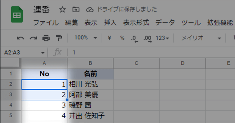 Googleスプレッドシートで連番を振る4つの方法。100件の連続データも、ズレない通し番号も自由自在!