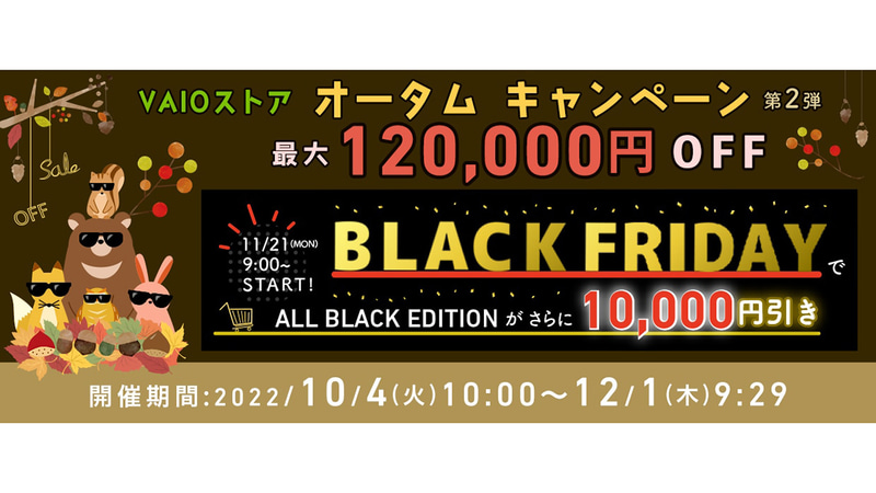 VAIOのALL BLACK EDITIONが最大11万1,700円引き。BLACK FRIDAYでセール中