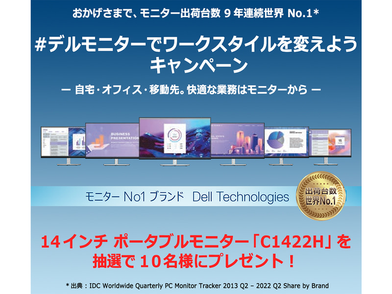 デル、14型モバイルモニターが抽選で10名に当たるSNSキャンペーン