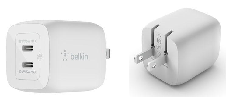 ベルキン、最大45W出力対応の2ポートUSB Type-C充電器