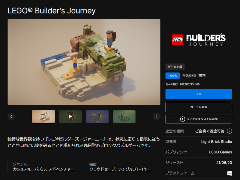 Epic Games、「LEGO Builder's Journey」を1日限定で無償配布