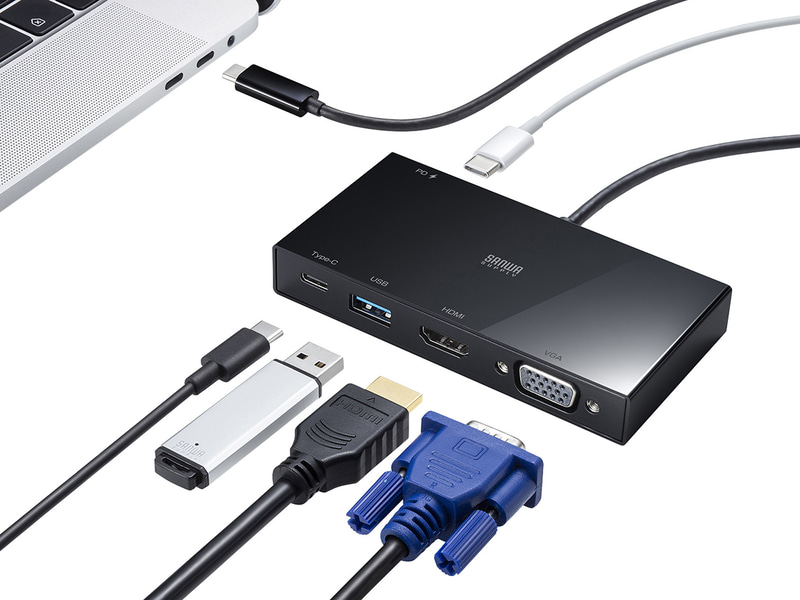 サンワサプライ、4K対応HDMIやミニD-Sub15ピン搭載のUSB Type-Cドック