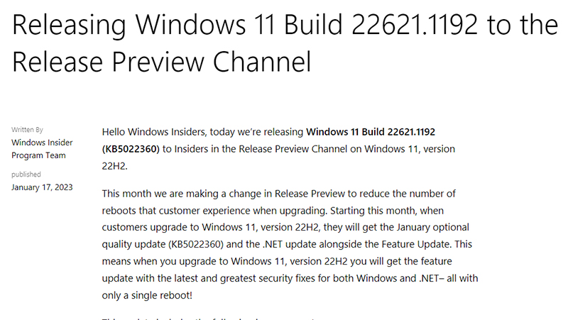 更新時の再起動を減らす変更など、Windows 11 Release Previewチャネル向けビルド提供開始