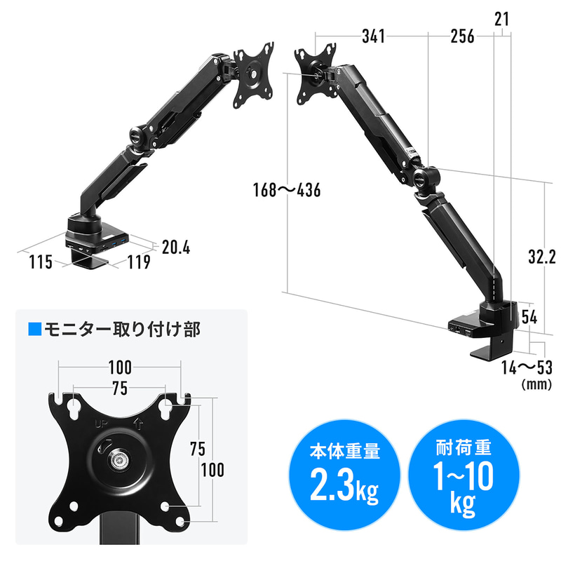 サンワサプライ、USB Type-Cドック搭載のモニターアーム(4/5)