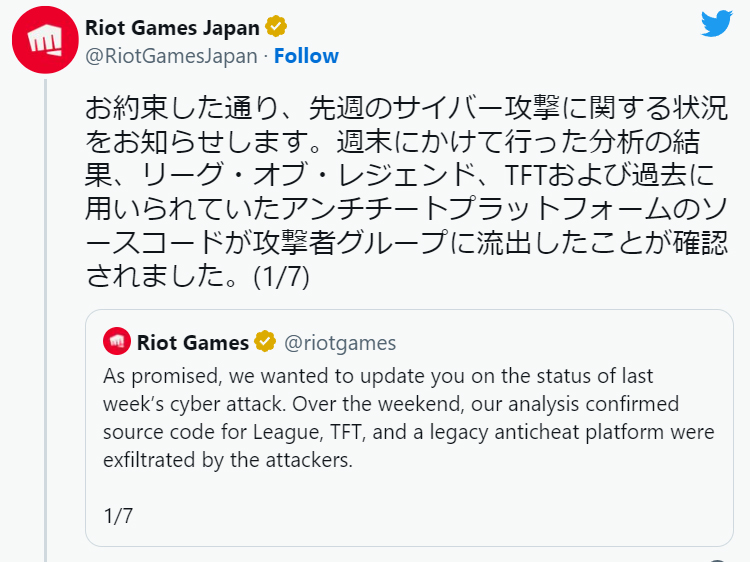 Riot Gamesへのサイバー攻撃、LoLのソースコードなど流出。身代金支払いは拒否