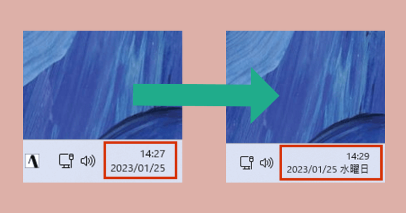 Windowsのタスクバーの日付に「曜日」を加える方法。意外と使う曜日の確認に便利!