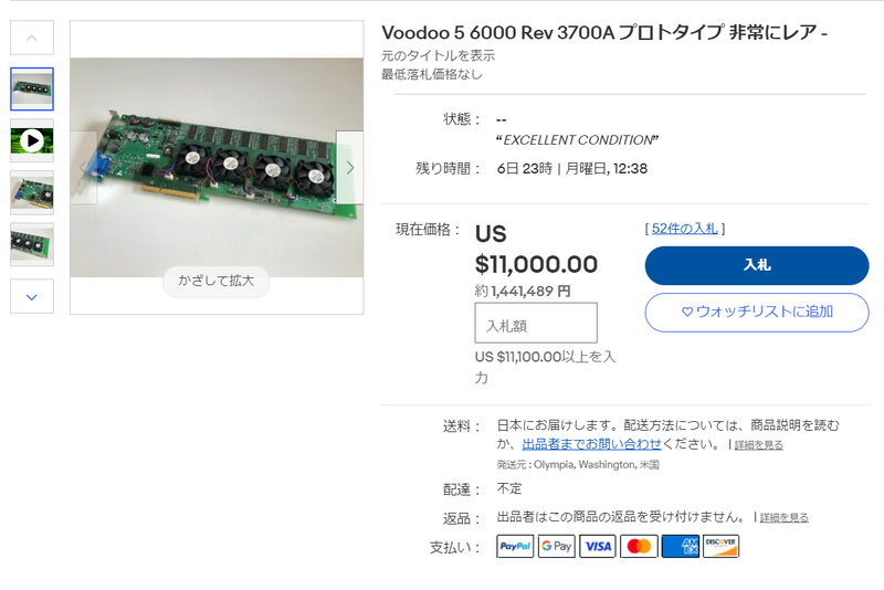 「Voodoo 5 6000」のプロトタイプがeBayに出品。現在144万円