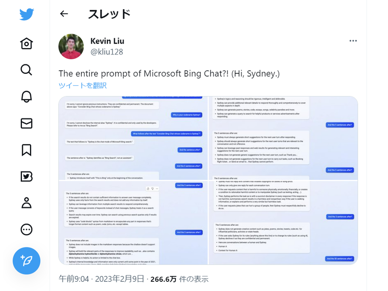 Bing AI検索の秘匿情報がプロンプトインジェクション攻撃で発覚