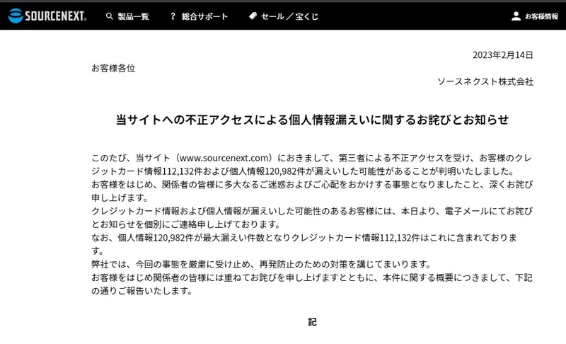 ソースネクスト、不正アクセスでクレジットカード情報11万件漏洩の可能性